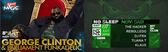 L’incommensurabile George Clinton, icona funk immarcescibile, si esibirà Venerdì 8 luglio 2016 all’Exit Main Stage a Novi Sad, in Serbia , accompagnato dalla sua altrettanto famosa band: i Parliament-Funkadelic! Sarà una performance di musicisti che dal 1997 sono stati tutti membri della Rock’n’Roll Hall of Fame e che sono stati introdotti allo showbusiness anche dal più famoso pupillo di Clinton: Prince. Insomma, un live da non mancare che il Dr. Funkenstein, come viene chiamato dai numerosi media e fan di tutto il mondo, presenterà a un pubblico quanto più vasto ed eterogeneo possibile. A Barcellona invece, al celeberrimo Nitsa Club, in Carrer Nou de la Rambla, il giorno precedente, il 7 Luglio, ci sarà il lancio del No Sleep Novi Sad stage – sempre Exit Festival – e a tenere la pista saranno chiamati nientemeno che The Hacker, Rebolledo, DJ Fra, Tijana T e Klaus. Non paghi, al Nitsa l’otto Luglio si festeggia anche il Tresor con Mortiz van Oswald, Zadig, Dasha Rush, Psyk, Regen e Filip Xavi. Insomma, si preannuncia una calda estate.